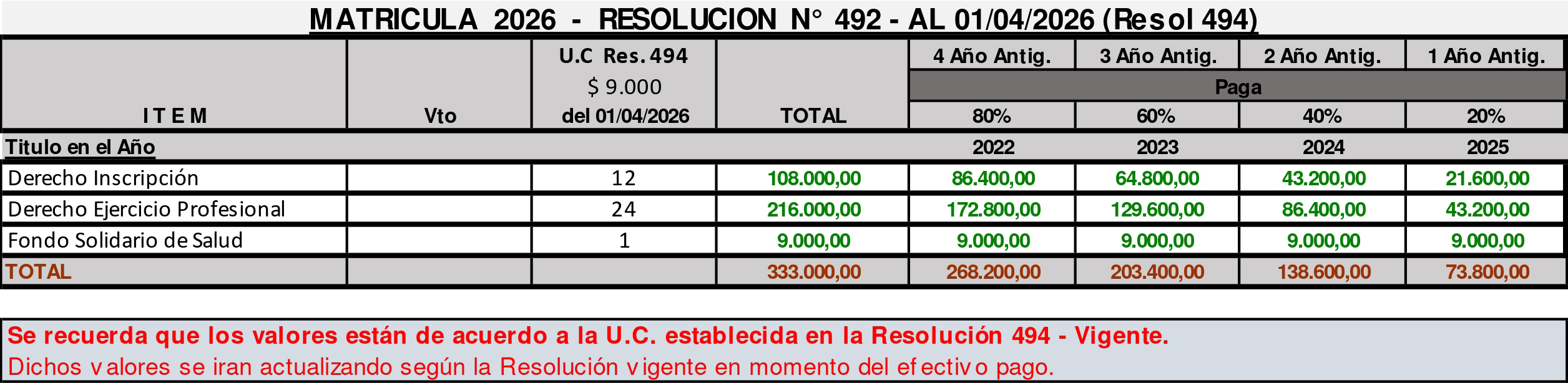 Se recuerda a los señores profesionales que el 31/03/2026 vence el plazo para presentar la solicitud de Matrícula Reducida (Resolución N° 248), Licencia (Resolución N° 381) y Cancelación en su matrícula.