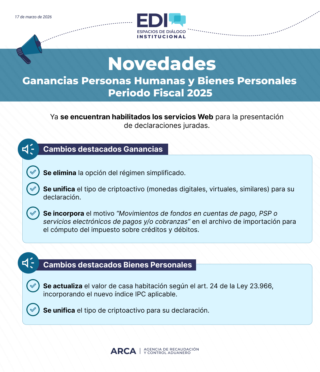 Informamos novedades que llegan desde ARCA
