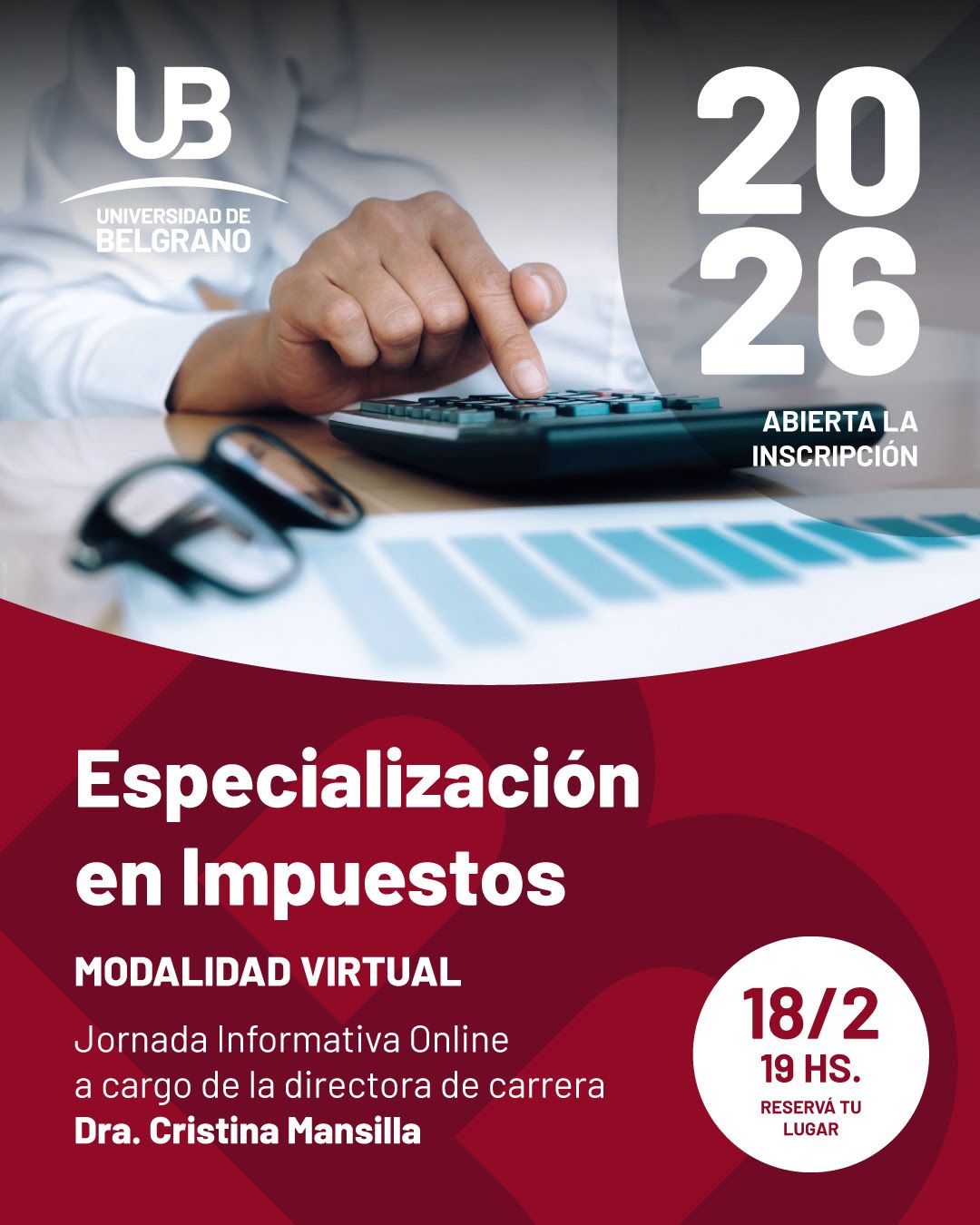 El mundo empresarial está en constante evolución, y una especialización es clave para destacar en el ejercicio profesional como asesores y planificadores tributarios. Por ello, te invitamos a nuestra charla informativa del posgrado en impuestos dependiente de la Facultad de Ciencias Económicas de la Universidad de Belgrano que se halla acreditado por CONEAU.
